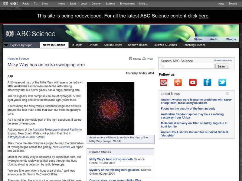 Australian Broadcasting Corporation: News in Science: Milky Way Has an Extra Sweeping Arm