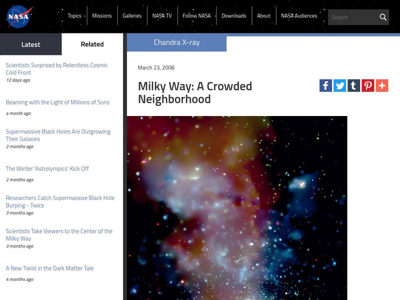 This Milky Way image is part of a series of photographs taken from the Spitzer Space Telescope. The picture is accompanied by a textual overview of the Milky Way with specific attention given to the details of the picture. Several higher...