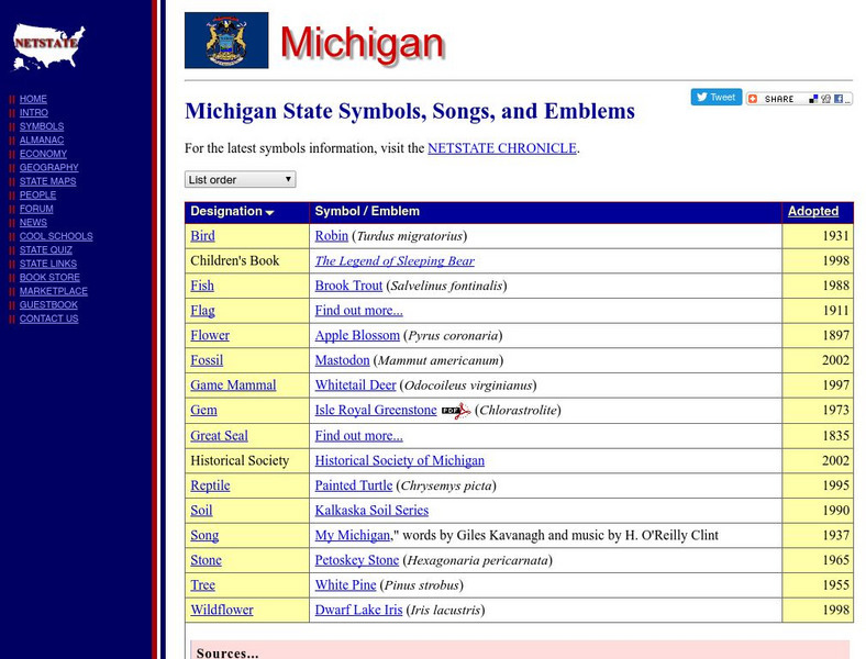Learn about the symbols of the state of Michigan. Click on the word to be taken to a picture and information about the symbol, including when it was adopted.