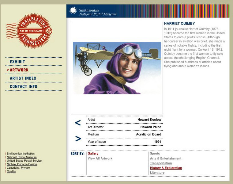 National Postal Museum: Art of the Stamp: Harriet Quimby