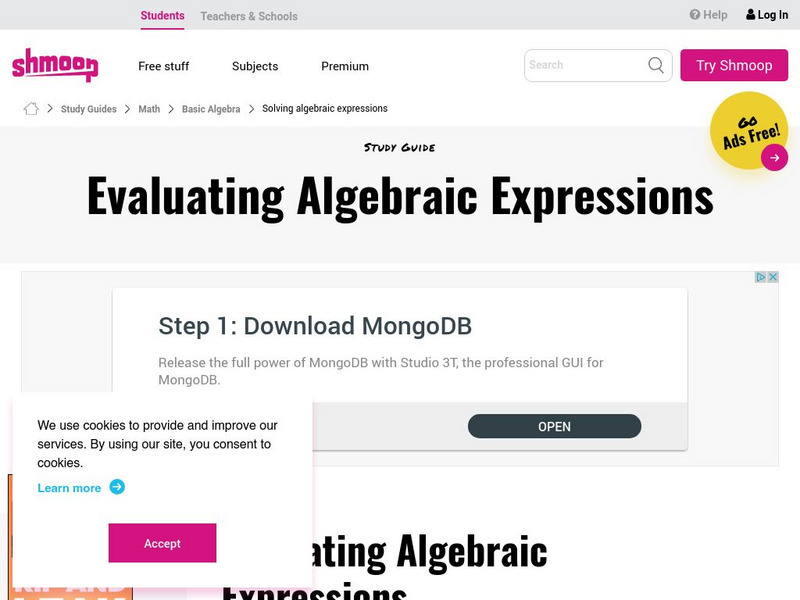 Shmoop: Basic Algebra: Evaluating Algebraic Expressions