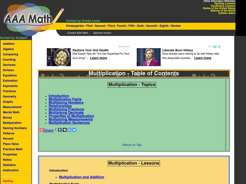 Aaa Math: All About Multiplication