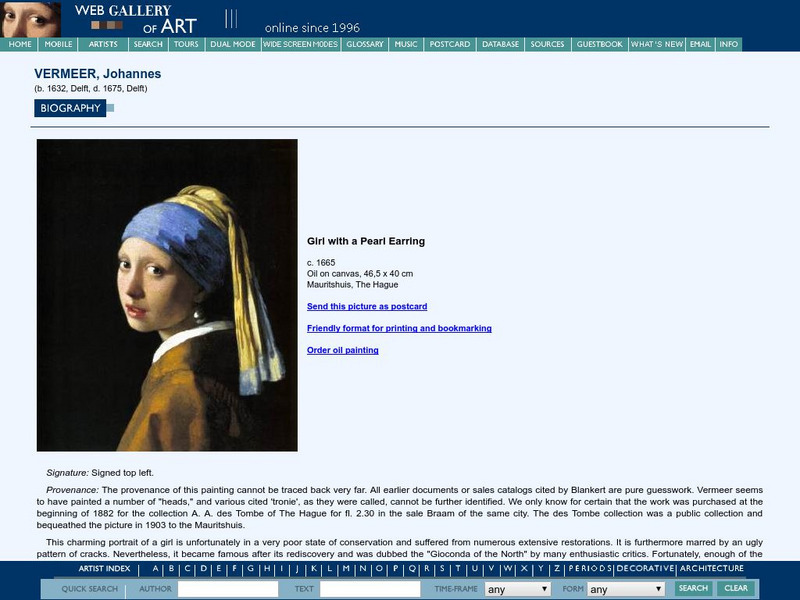 This site from the Web Gallery of Art provides some detailed information and an image of Vermeer's famous portrait of a mysterious young girl. Click to see a Vermeer biography.
