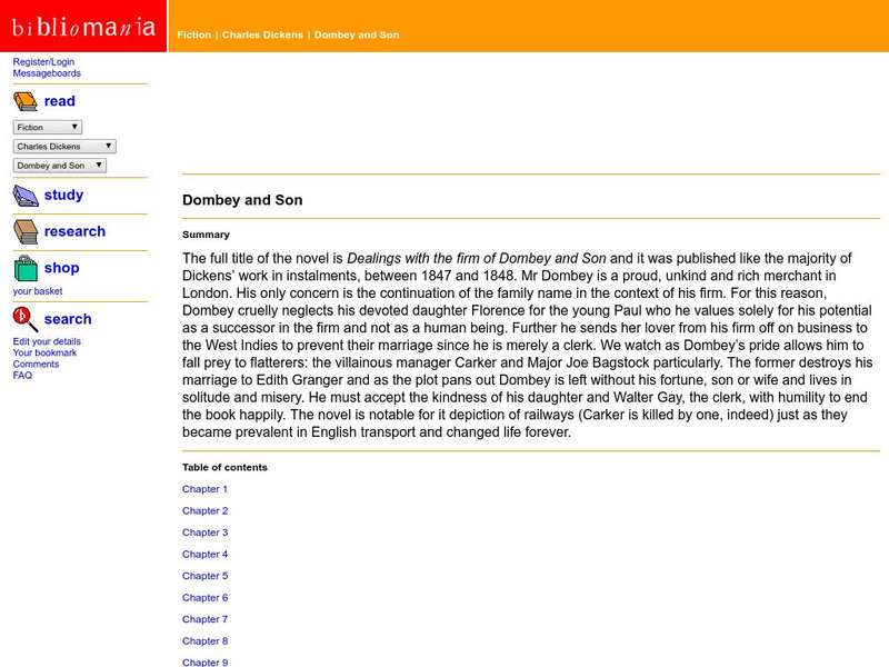 This site provides the full text of Dickens' novel "Dombey and Son." A brief summary is also included.