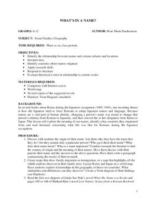 Students explore the relationship between names and certain cultures and locations. In this identity activity, students create family migration or immigration maps. Students read excerpts from When My Name was Keoko and Lost Names:...