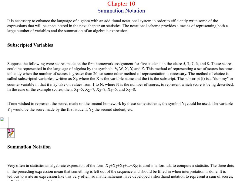 Provides a complete look at the mathematical summation sign. Examples of how to interpret and use the sign are presented as needed.
