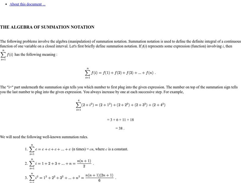 Uc Davis: The Algebra of Sigma (Summation) Notation