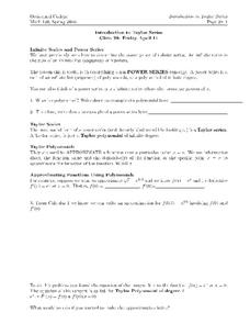 In this Taylor series worksheet, students determine the difference between a Taylor series and a Taylor polynomial. They solve function problems. This two-page worksheet contains seven problems.