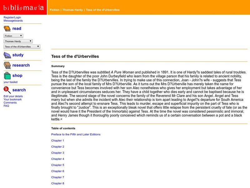 Bibliomania: Tess of the D'urbervilles: Study Guide