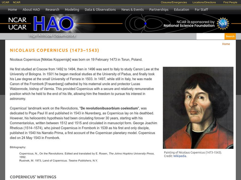 Ucar: High Alt. Observatory: Nicolaus Copernicus (1473 1543)