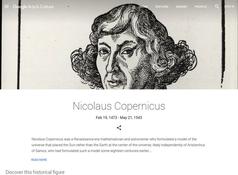 This visual website from Google Cultural Institute shares background information and photos about Nicolaus Copernicus.