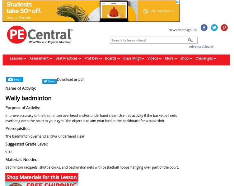 Pe Central: Pe Lesson Ideas: Wally Badminton