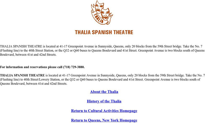 The Thalia Spanish Theatre is a nonprofit theatre whose purpose is to serve the cultural needs of the Hispanic community in New York. They are the only Spanish theatre in Queens, NY.