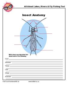 In this insect worksheet, learners label the parts of an insect on a diagram and then write down one fact about each of the body parts. This worksheet has 5 fill in the blank and 6 short answer questions.