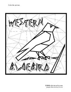 In this handwriting worksheet, students trace and print the lowercase letters that spell out the word blue three times. Students color and decorate a picture of a bluebird for illustration.