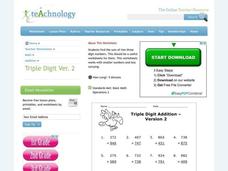 In this addition practice worksheet, students sharpen their math skills as they solve 20 problems that require them to add 3 digit numbers to 3 digit numbers.