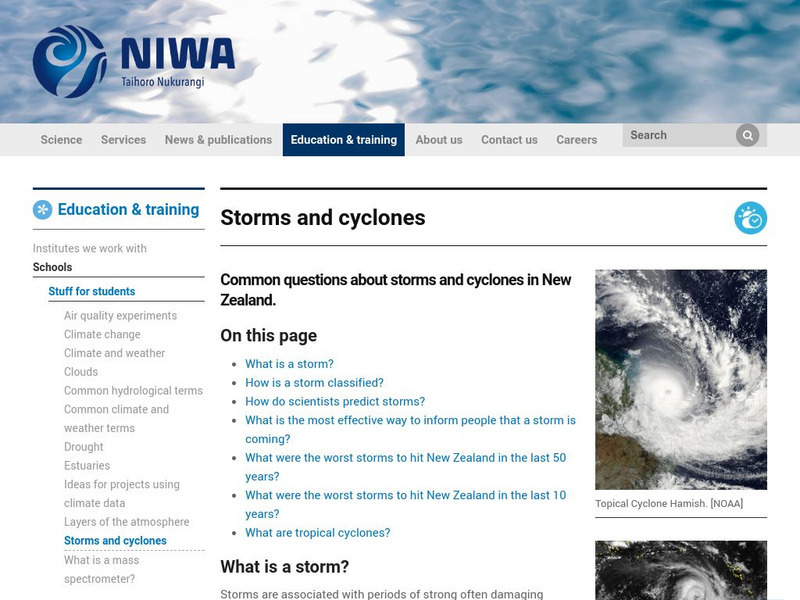 Learn about storms and cyclones with this website. Understand how storms are classified and predicted. Also learn about tropical cyclones which are revolving storms that occur in the Southwest Pacific and Indian Ocean. Site focuses on...
