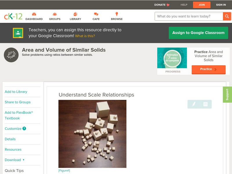[Free Registration/Login may be required to access all resource tools.] In this lesson students gain an understanding of scale relationships of area and volume. Students examine guided notes, review guided practice, watch instructional...