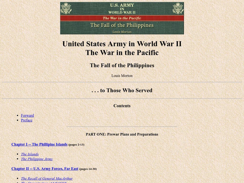 Read about the fall of the Phillippines during World War II. Site is broken down by chapter.