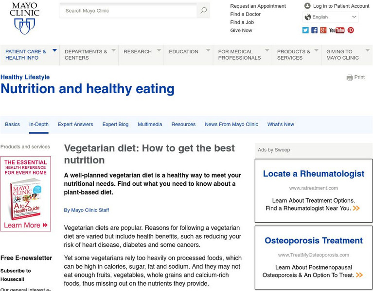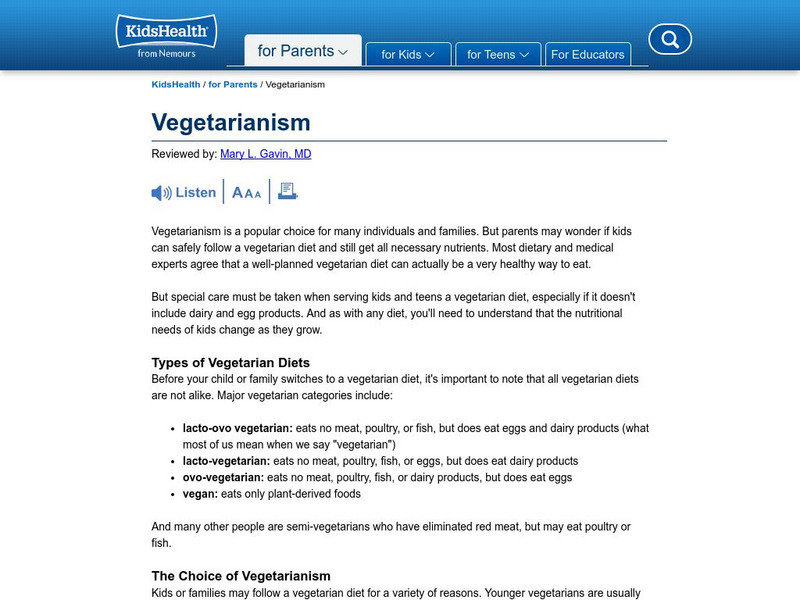 American Heart Association: Getting Healthy: Nutrition Center: Vegetarian Diets