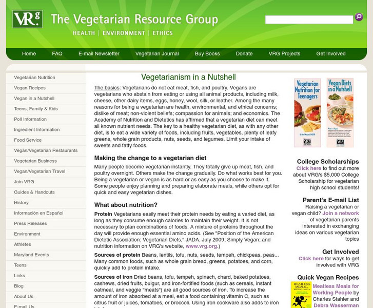 Vegetarian Resource Group: Vegetarian in a Nutshell