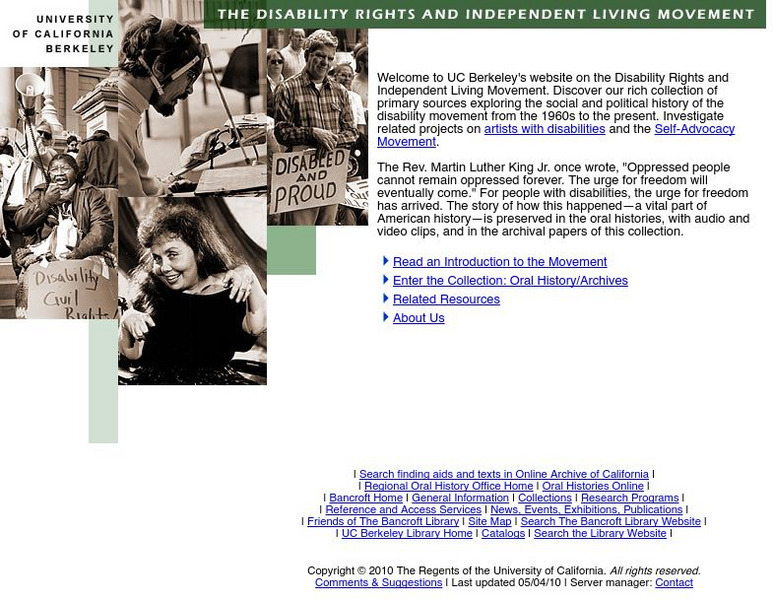 Univ. Of Cal. Berkeley: The Disability and Independent Living Movement
