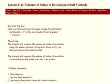 Students examine volumes of solids of revolution. For this volumes of solids of revolution lesson, students use the limit of a Riemann sum to find the volumes of disks or cylinders and a sphere.