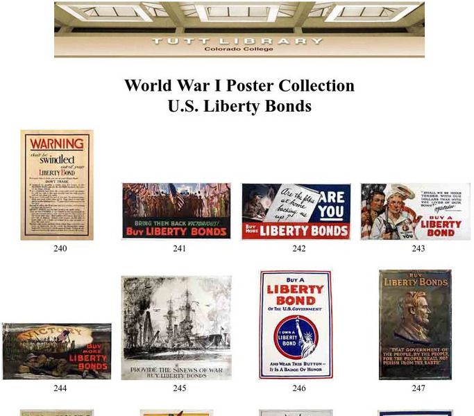 Some examples of posters which were used during World War I to promote the buying of Liberty Bonds. Each thumbnail, when clicked on, links to a larger image and general information.