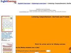 In this Garfield worksheet, students watch a video about Garfield and answer true and false, multiple choice, and crossword questions about it. Students complete 3 activities total.