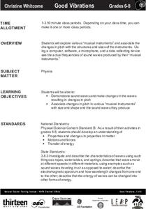 resulting in changes in pitch. Students associate changes in pitch in various "musical instruments"with size and shape and the sound waves they produce.