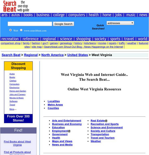This site provides links to various aspects of West Virginia, including state government, counties, state parks, colleges, and TV and radio stations.
