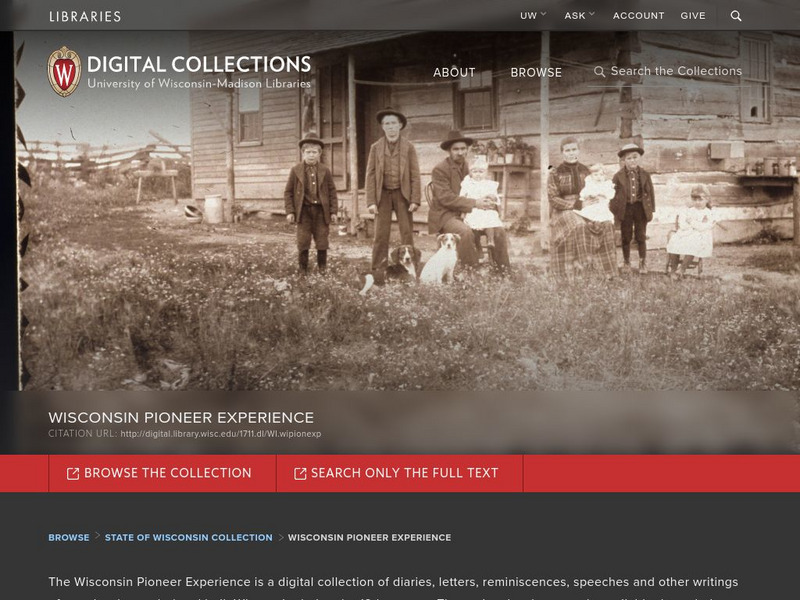 Collection of primary source journals, letters, etc. on pioneer life in Wisconsin.