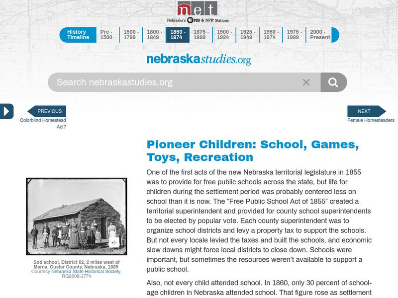 Nebraska Studies: Pioneer Children: Games, Toys, and Recreation