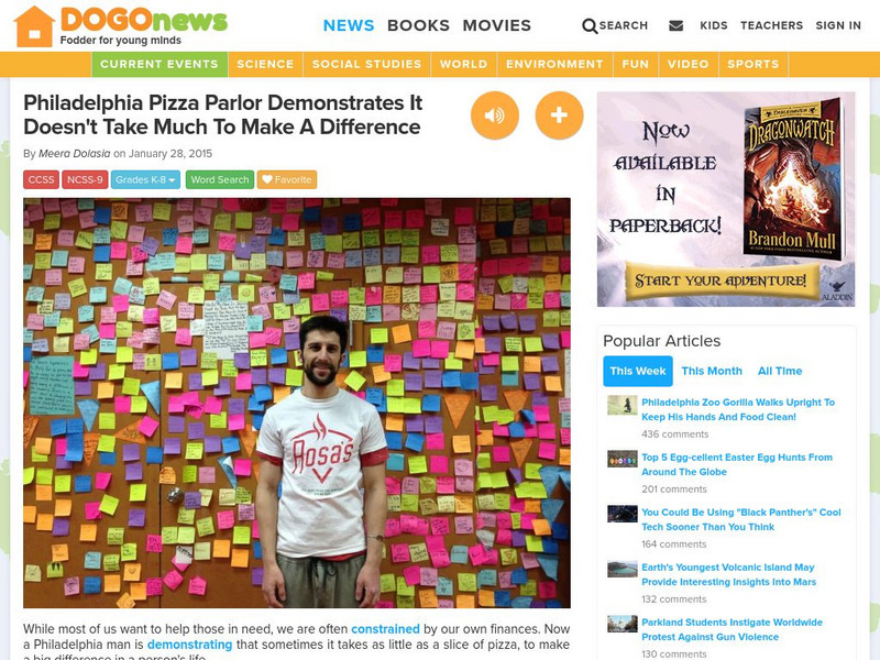 Read how a pizza parlor in Philadelphia has embraced the concept of giving in a way that helps feed the homeless. Includes a video and a list of comprehension questions.
