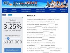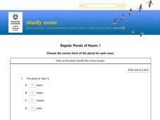 In this regular and irregular plurals instructional activity, students watch a video about plurals, add correct endings to words to form plurals and choose correct forms of plurals.