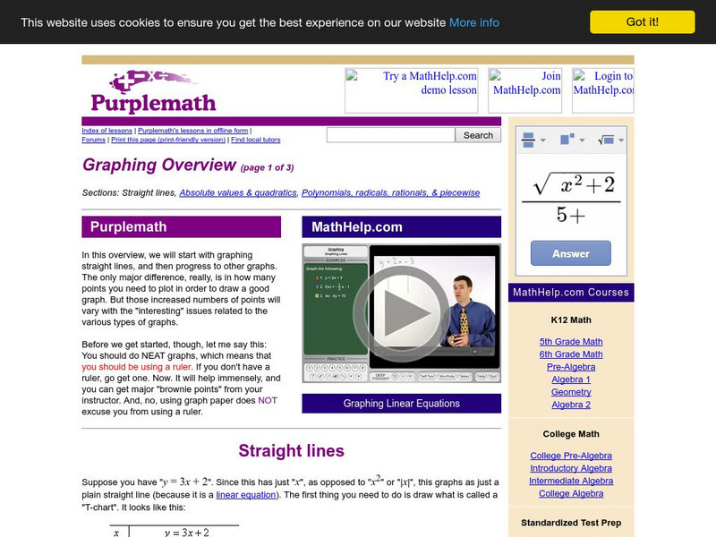 This resource provides an overview of graphing for various types of functions, instruction on graphing straight lines and also, includes advice on common mistakes made by students.
