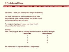 In this psychological game worksheet, students write positive integers. They explore the relative frequency of the numbers used. This one-page worksheet contains 1 problem. The answer is listed at the bottom of the page.