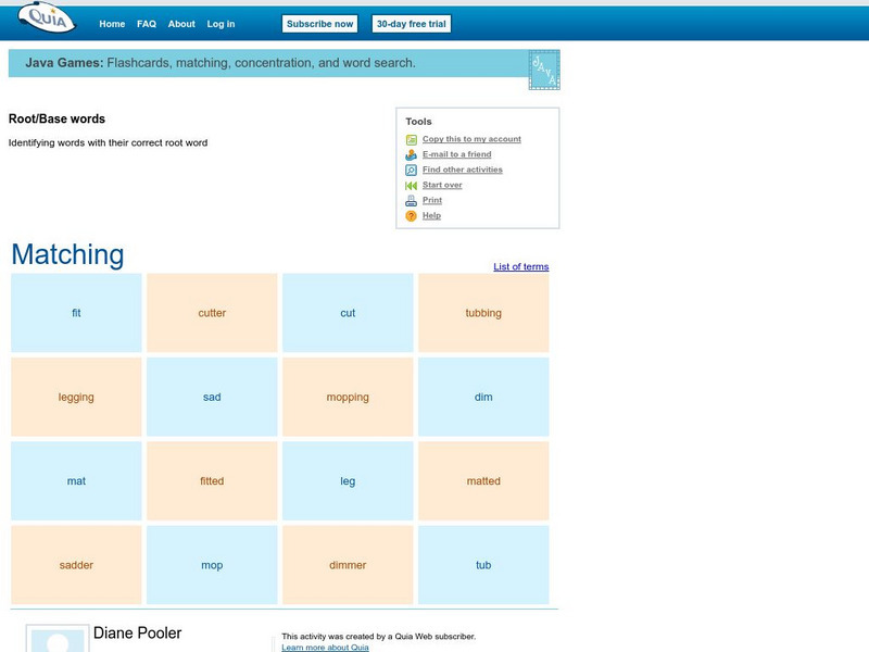 In this learning game, students match words with their correct root word.