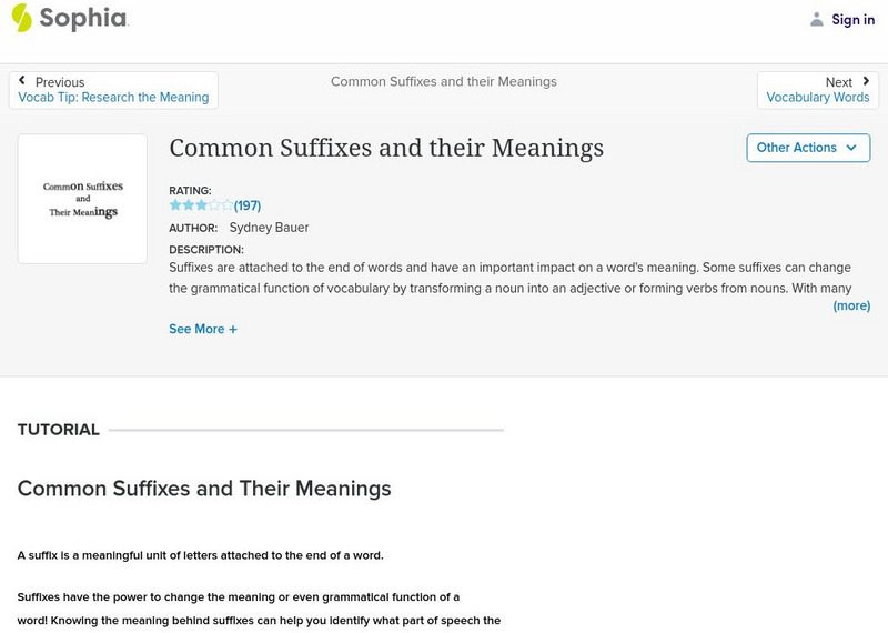 This lesson introduces common suffixes and their meanings.