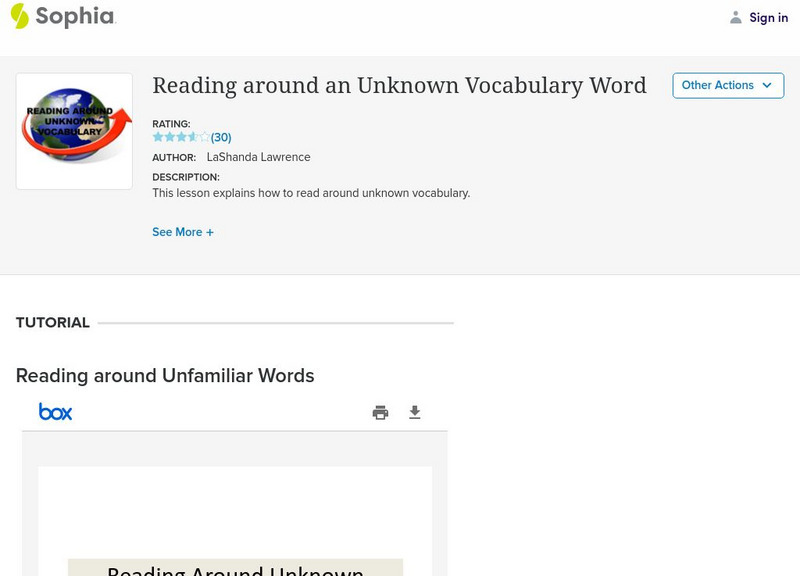 Sophia: Reading Around an Unknown Vocabulary Word: Tutorial