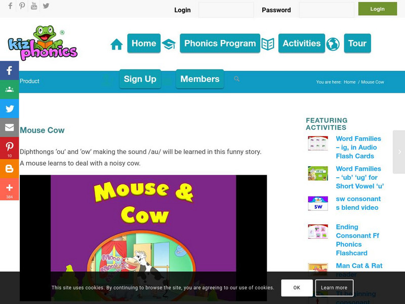 In this interactive story [2:51], students will listen to the story about a mouse who has to learn how to deal with a noisy cow. The 'ou' and 'ow' diphthongs that make the sound /au/ will be learned in this funny story.