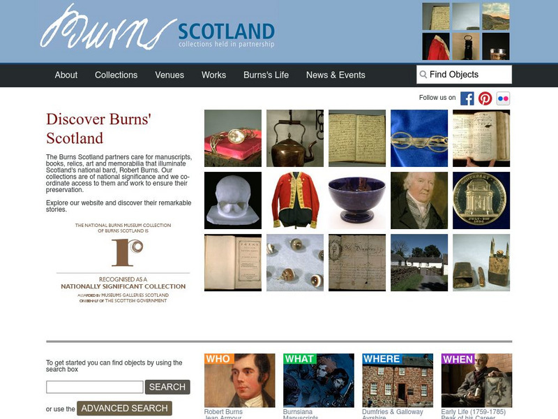Fantastic resource for information about Robert Burns. Search over 2000 Burns related objects in the online Gallery and Catalogue. The Learning section contains downloadable PDF Teacher Resource Kits and Virtual Visits to historical...
