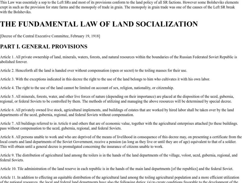 The Fundamental Law of Land Socialization