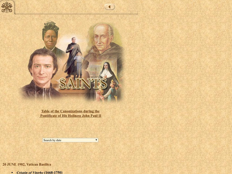 An index of of saints canonized during the pontificate of John Paul II. Search by date or scroll down a clickable list. Most entries include both a portrait and a full biography, but some bios have yet to be translated into English.