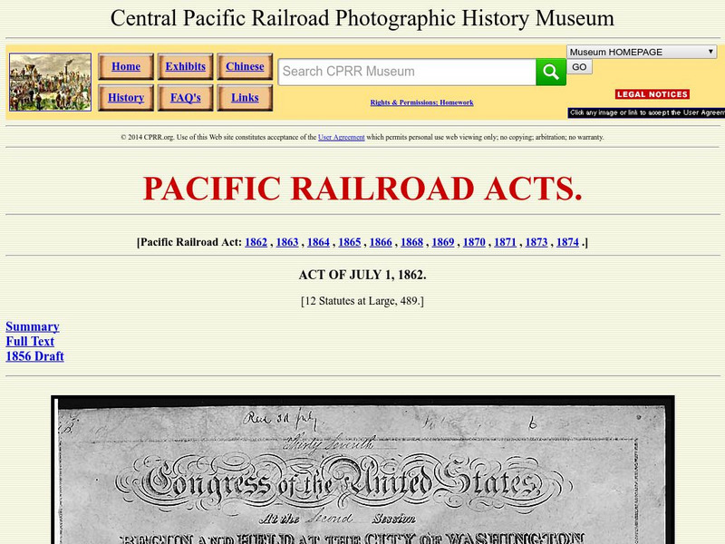 Cprr History Museum: Pacific Railroad Acts