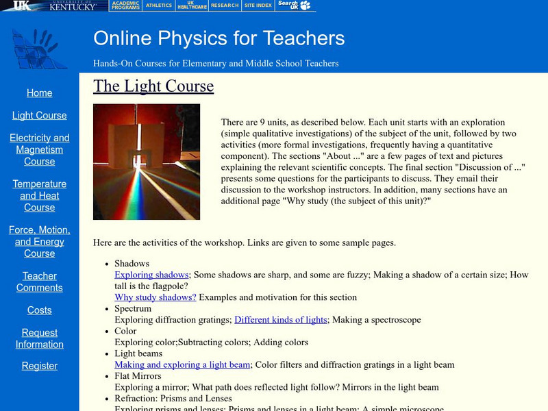 On line course on light for graduate credit or professional development, that emphasizes handson activities you can use in your classroom.
