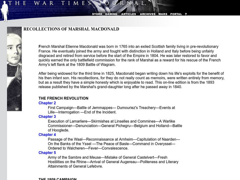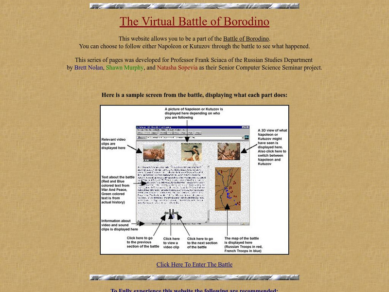 Follow Napoleon or Kutuzov through the Battle of Borodino. Site provides narrative as well as a 3D view of what Napoleon or Kutuzov might have seen during the Battle.