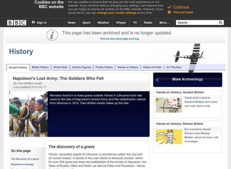The captivating story of the recent find of a mass grave in Vilnius, Lithuania, that holds the remains of Napoleon's Lost Army. Site recounts the Russian withdrawal disaster of 1812.