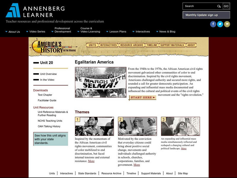 Comprehensive teaching unit on egalitarian America: Americans that demanded political, social, and economic equality in all walks of life. Learn how the civil rights movement and an expanding mass media helped to reshape a changing...