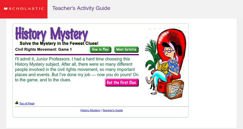 Students try to guess the mystery subject Carlotta Facts, the History Mystery Museum's professor, is studying. They read the clues, do some online and offline research, and then attempt to identify the game's mystery person, Coretta...